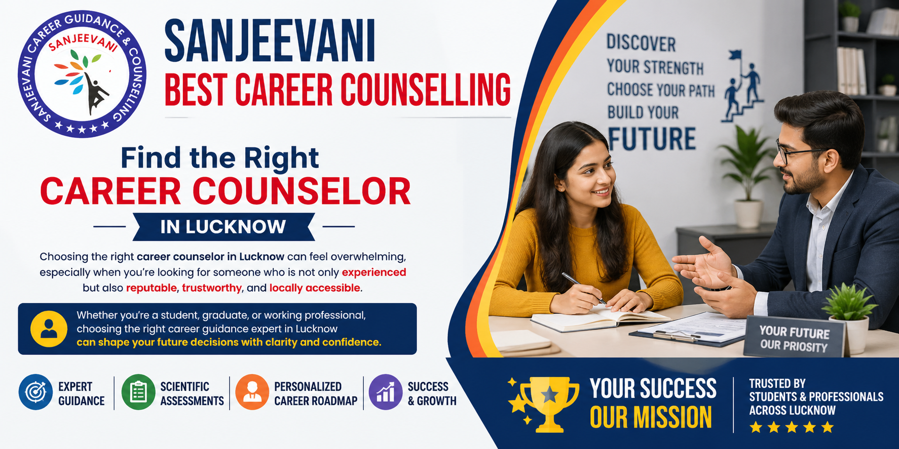 Looking for trusted Career Counselling? Here’s why Sanjeevani is the right choice: Complete Career Assessment – We evaluate both your natural strengths and learned interests. Free Post-Counselling Support – Ongoing guidance, even after your session ends. Unbiased Advice – 100% personalized, with no external influence. Industry Expert Interaction – Get real-world insights from professionals. Custom Career Roadmap – A clear path tailored to your goals.